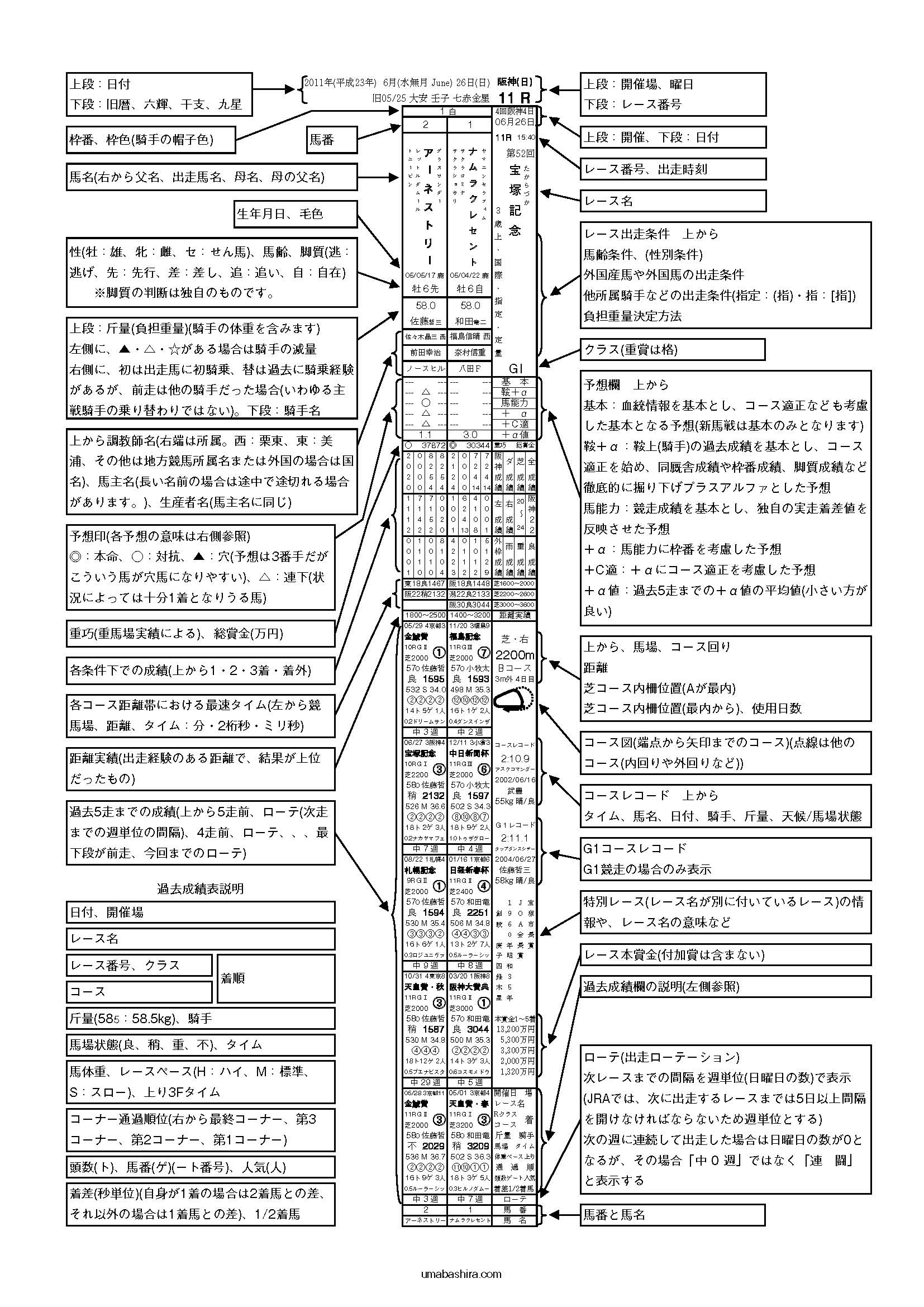 馬番ごとに、馬の情報や過去成績を載せたのが「馬柱」だとしたら、